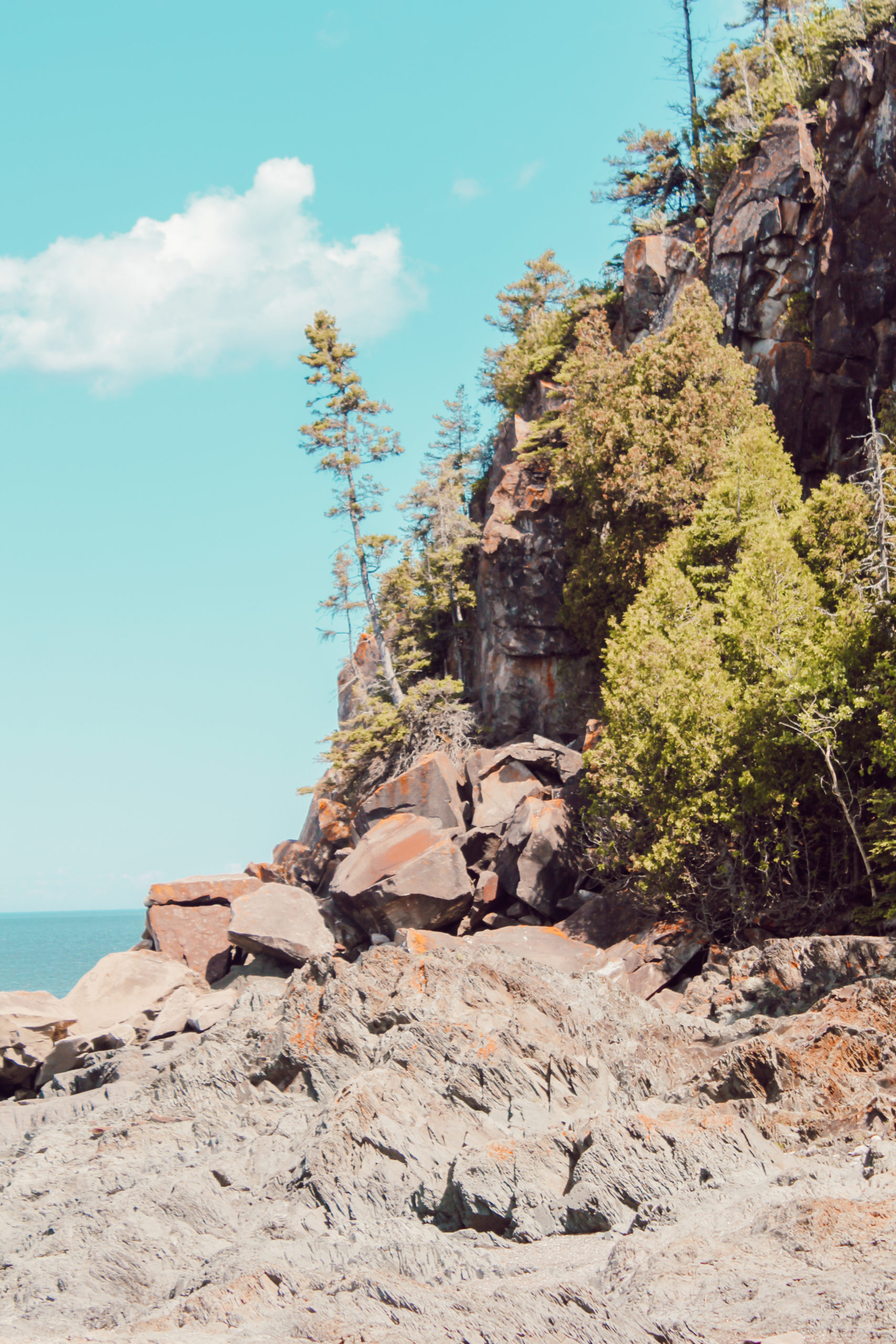 Le chemin du Nord avec ses paysages côtiers et son aspect historique est un sentier qui vaut le détour. En longeant la côte et la « mer » (le Saint-Laurent en réalité), vous profiterez d’une vue magnifique pendant 4 km. A plusieurs reprises vous pouvez regagner la plage pour vous y baigner, tremper les pieds ou simplement marcher sur les rochers. Attention à la marée, elle est traite et monte très vite!